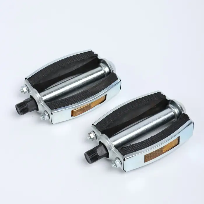 Педали с шариковыми подшипниками оснащены антискользящими накладками. Подходят для прогулочных велосипедов, удобны для простой обуви. Ось изготовлена из стали.