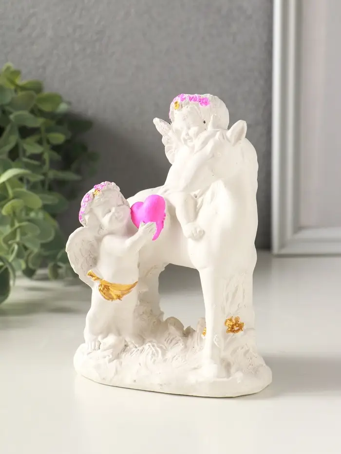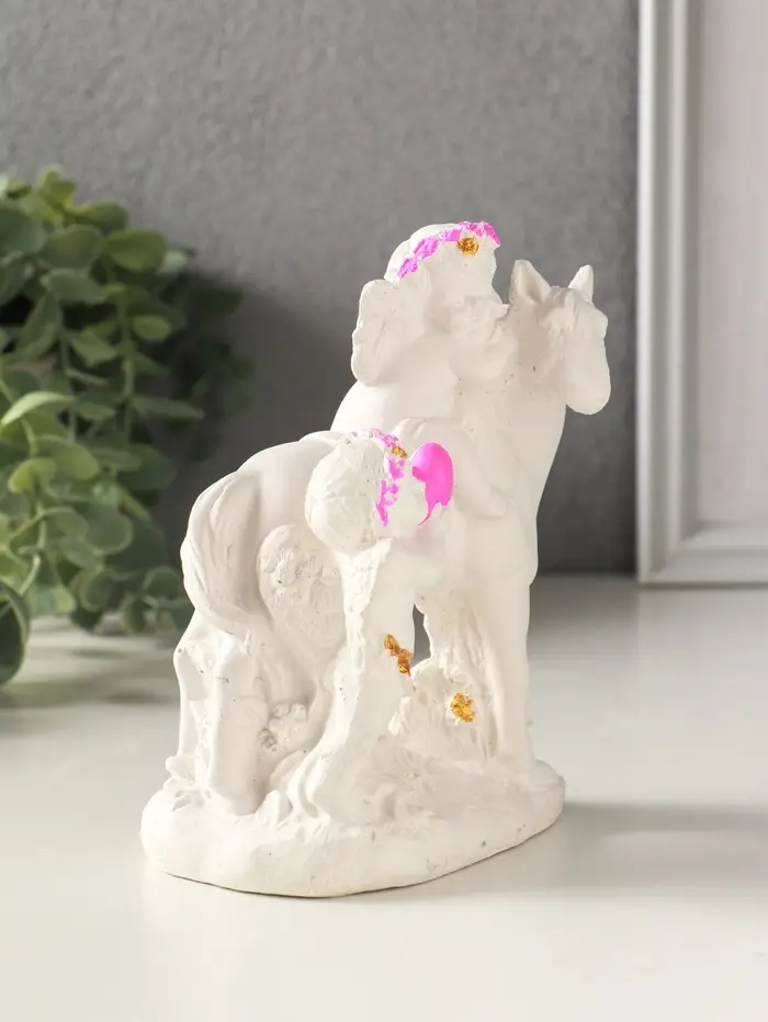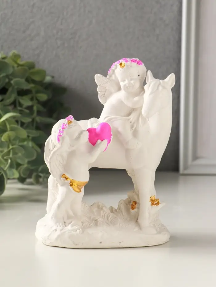 Фигурка гипс «Ангелочки на коне», 13×10×7 см, белый с росписью