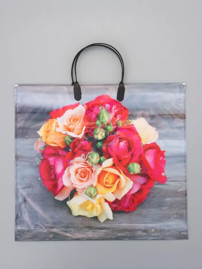 Пакет "Волшебный букет", полиэтиленовый с пластиковой ручкой, 38 х 34 + 3 см, 90 мкм