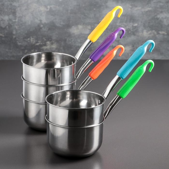 Ковш из нержавеющей стали, 1 л, пластиковая ручка, цвет ручки МИКС