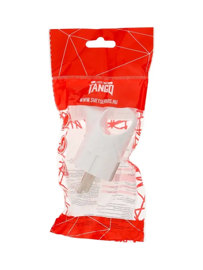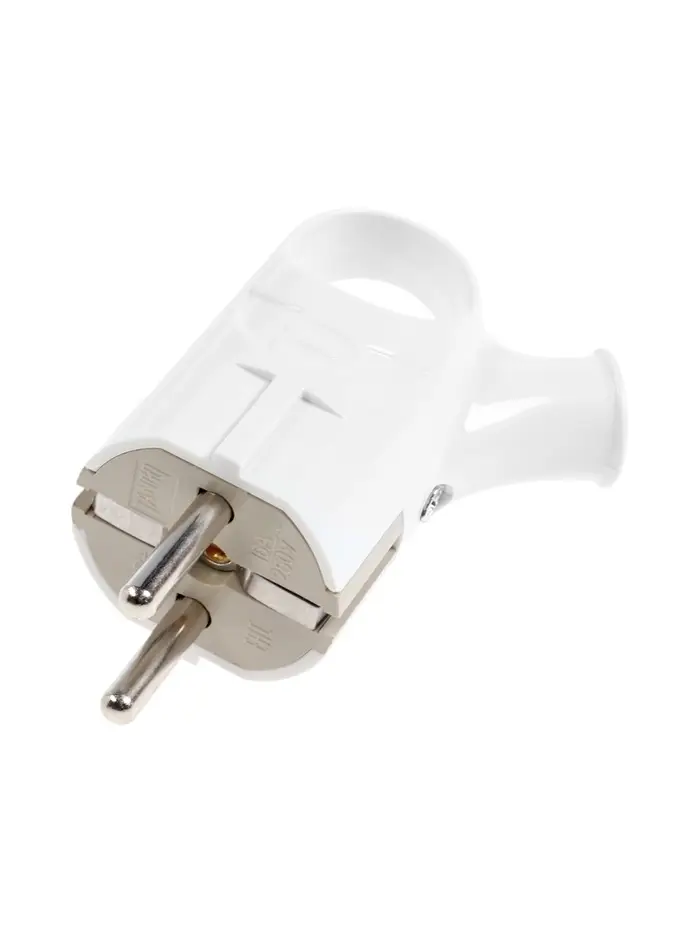 Вилка угловая с ушком TANGO, 16 А, 250 В, IP 20, с заземлением, белая, индивидуальная упаковка 10981