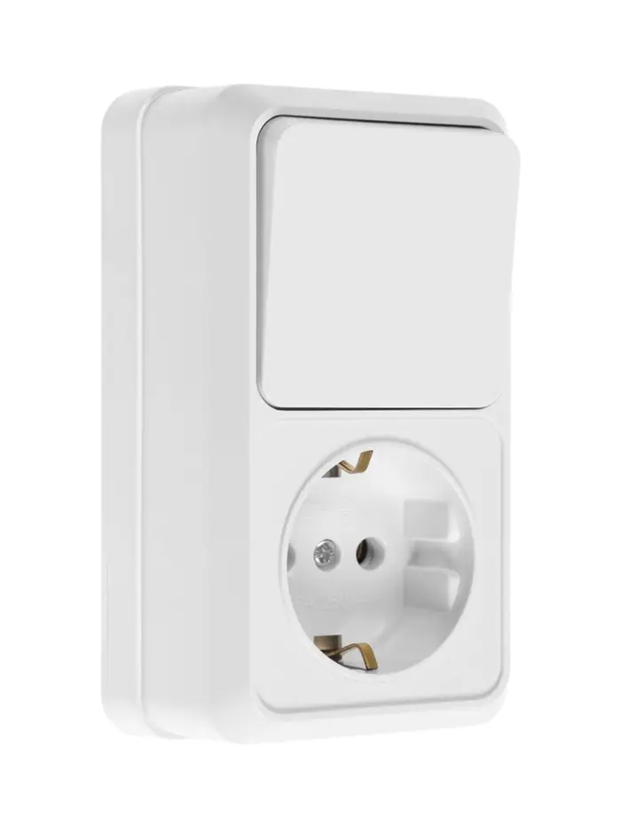 Выключатель с розеткой вертикальный TANGO, 16 А, 1 клавиша + розетка, IP 20, открытой проводки с заз