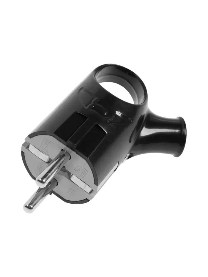 Вилка угловая с ушком TANGO, 16 А, 250 В, IP 20, с заземлением, черная, индивидуальная упаковка 1098