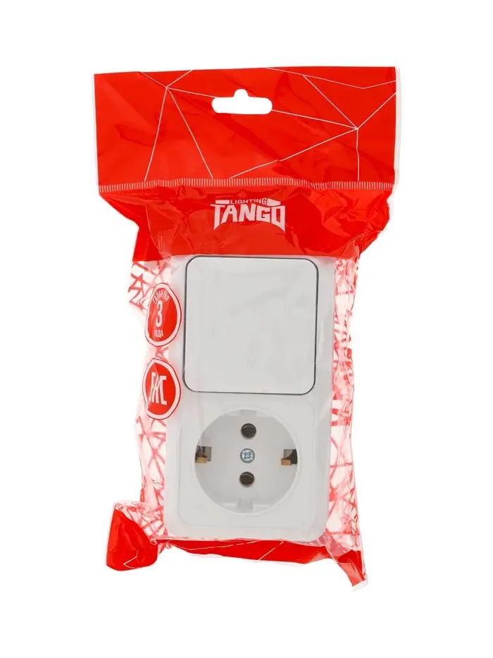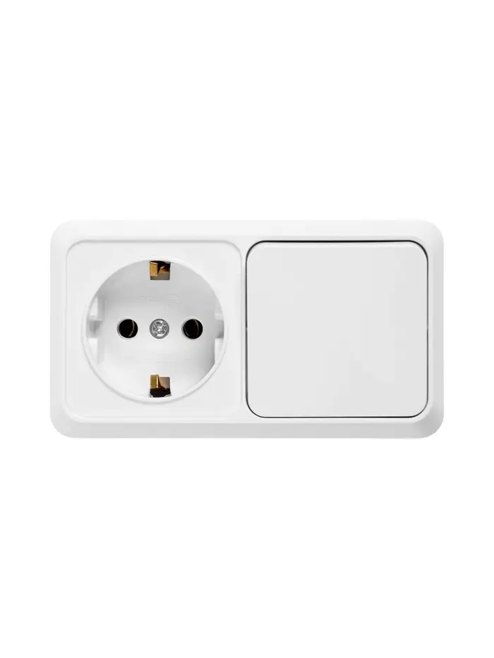 Выключатель с розеткой горизонтальный TANGO, 16 А, 1 клавиша + розетка, IP 20, открытой проводки с з