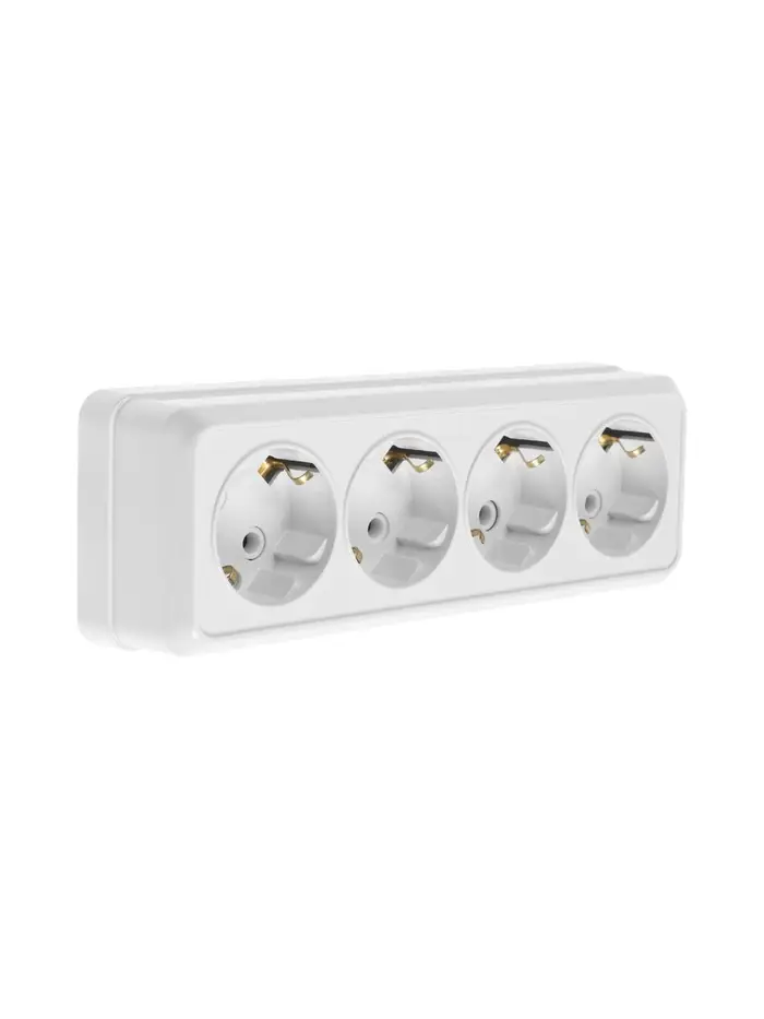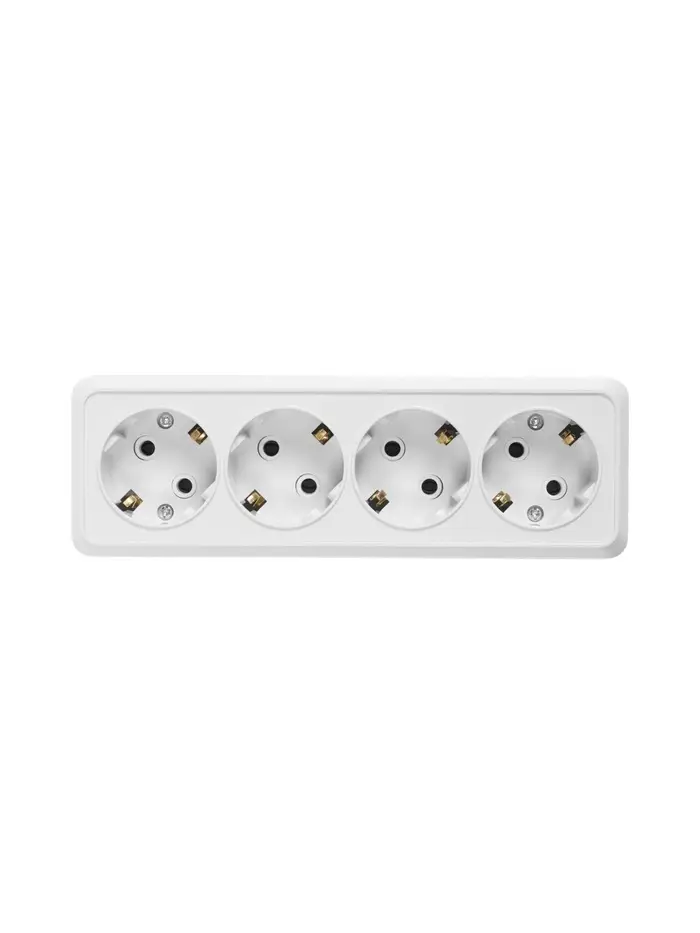 Розетка четырехместная TANGO, 16 А, 250 В, IP 20, с заземлением, огнеупорный ABS-пластик, белая 1098