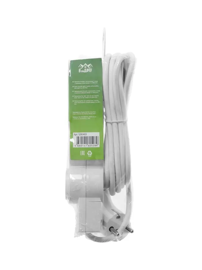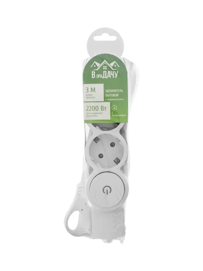 Удлинитель бытовой с выключателем В приДАЧУ, 3 гнезда, 3м, 10 А, 2200 вт, ПВС 3×0,75мм2, с заземлени