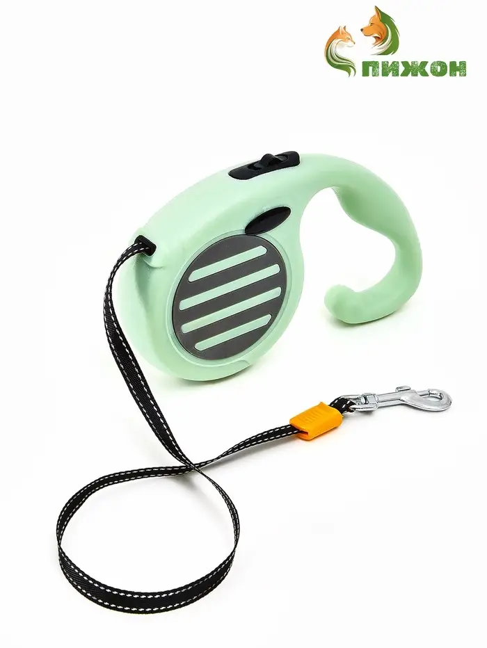 Рулетка - поводок для собак, лента 3 м, зелёная