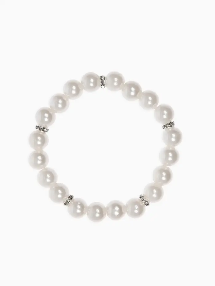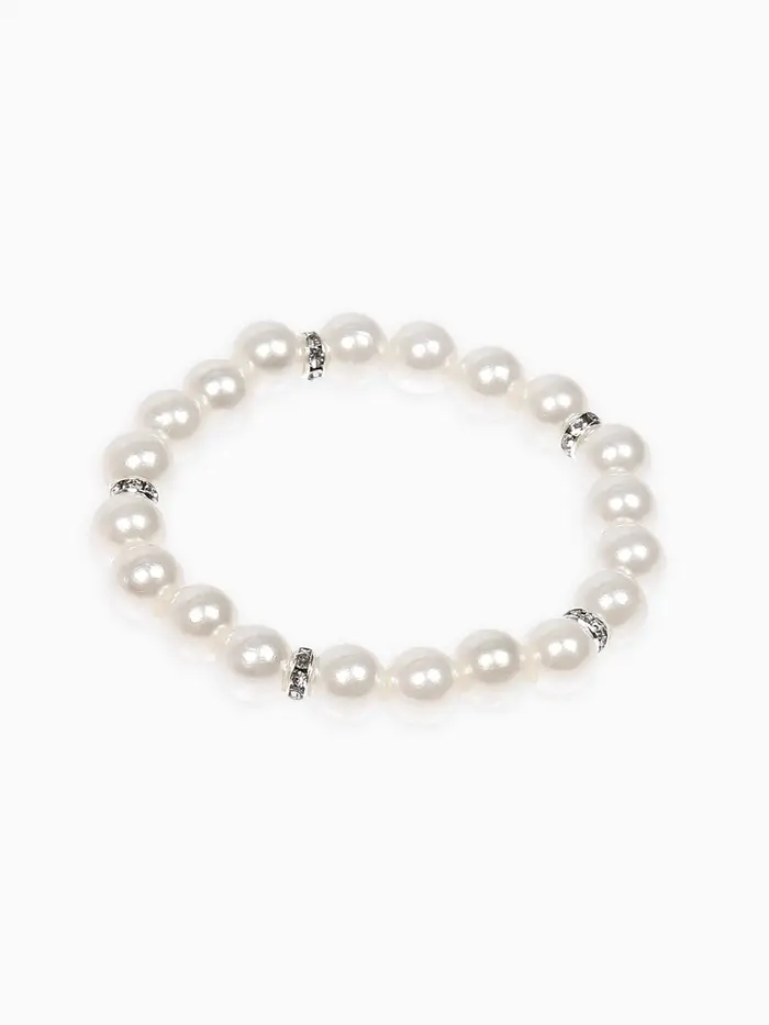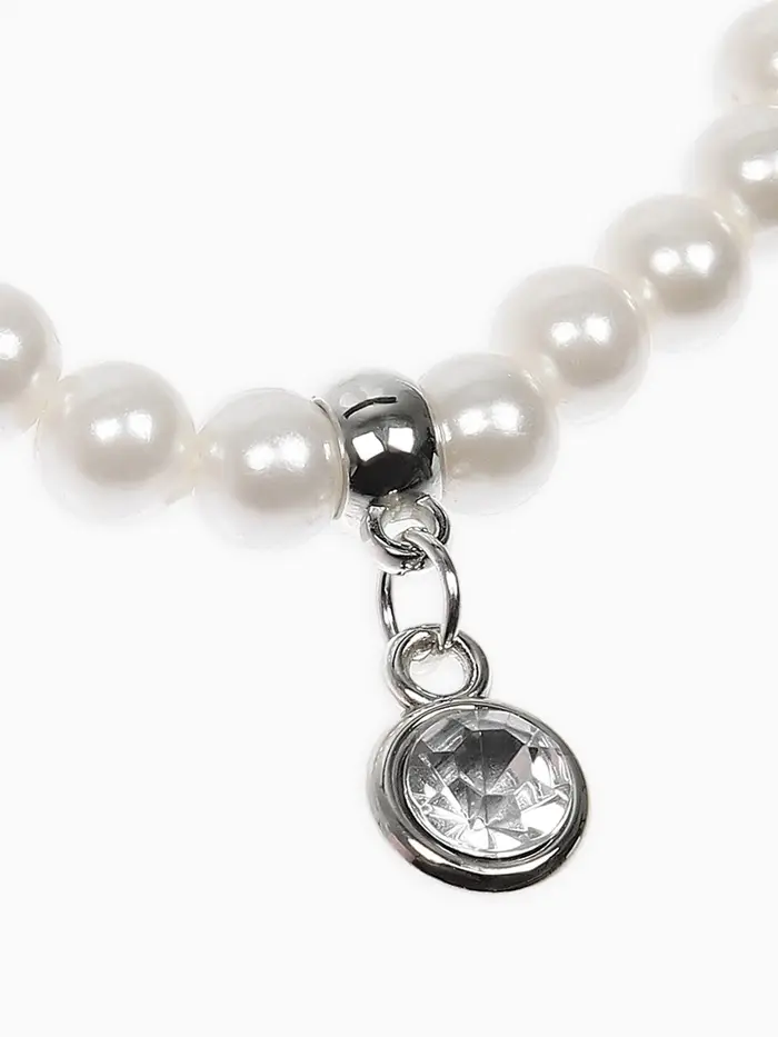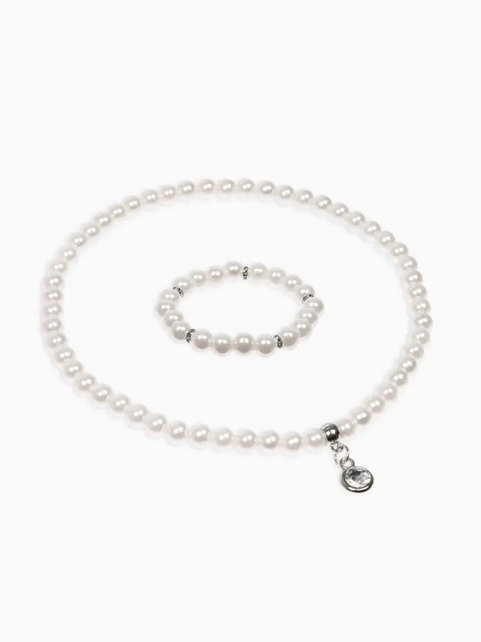 Набор детский «Выбражулька» 2 предмета: бусы, браслет d=6 см. жемчуг, белый в серебре