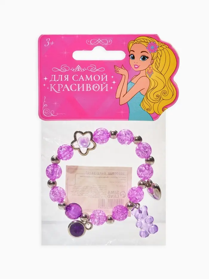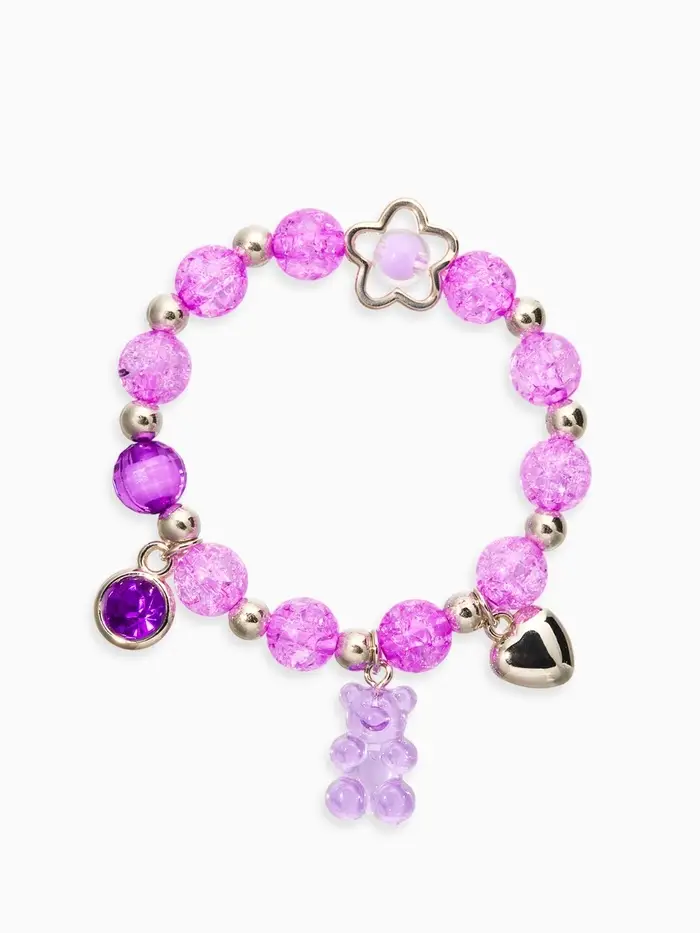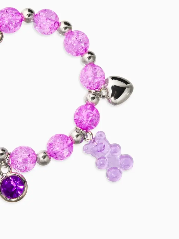 Браслет детский «Выбражулька» мармеладный мишка, сердце, d=6 см. сиреневый в серебре