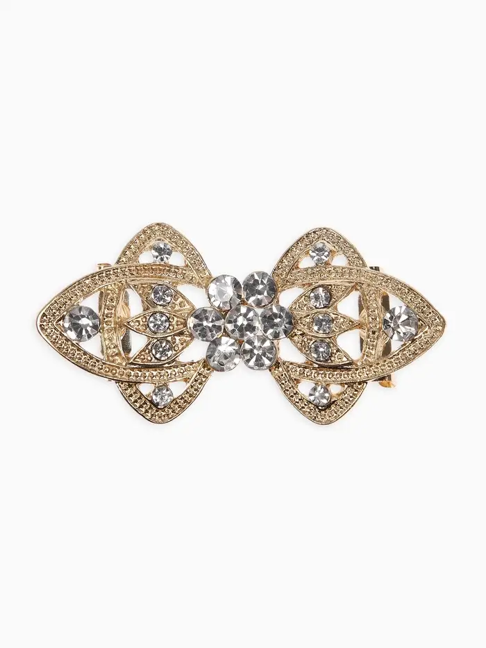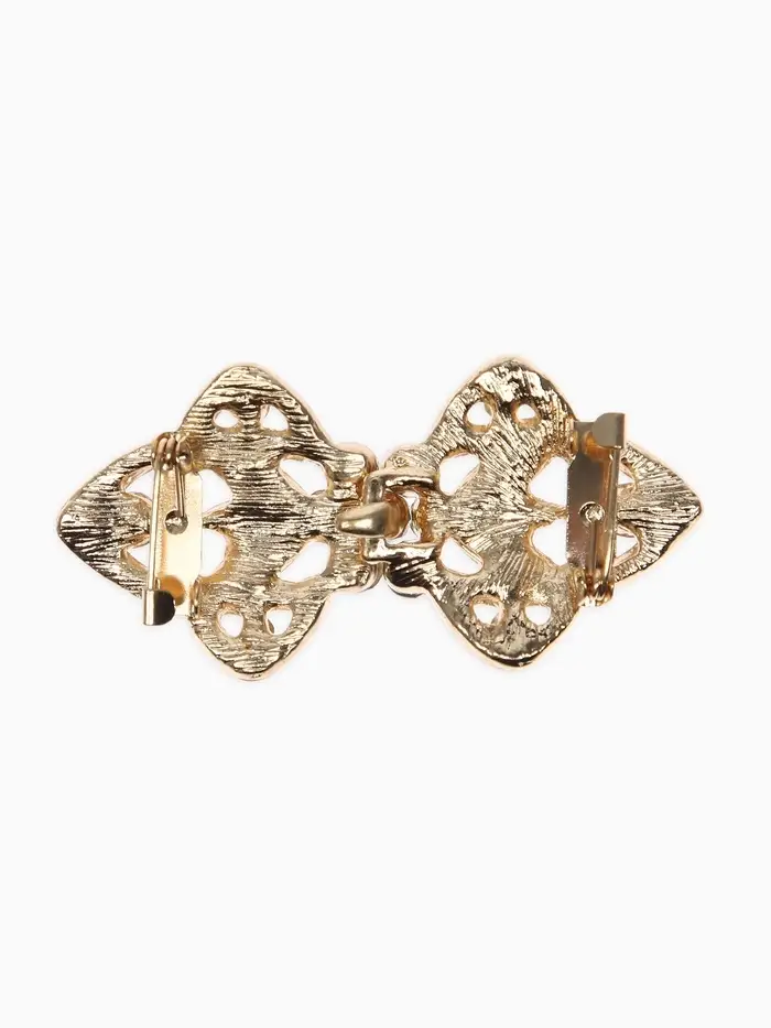 Зажим для кардигана "Ажур", лепестки, цвет белый в золоте