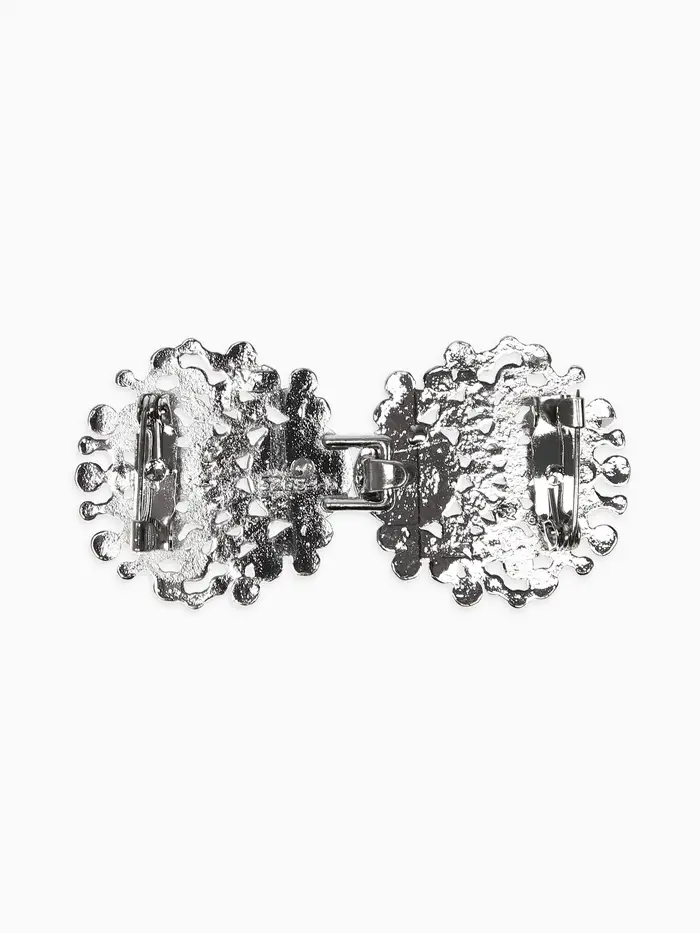 Зажим для кардигана "Ажур", веер, цвет белый в серебре