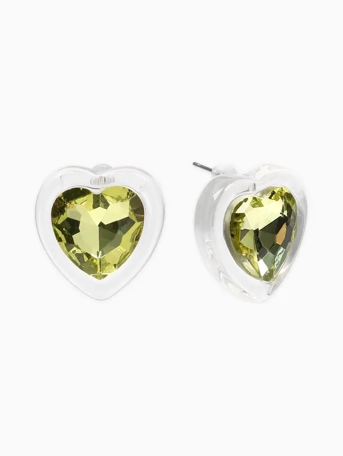 Серьги "Кристалл" сердце, цвет прозрачно-св.зелёный