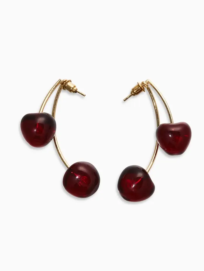 Серьги "Черешня" двойные, цвет бордовый в золоте