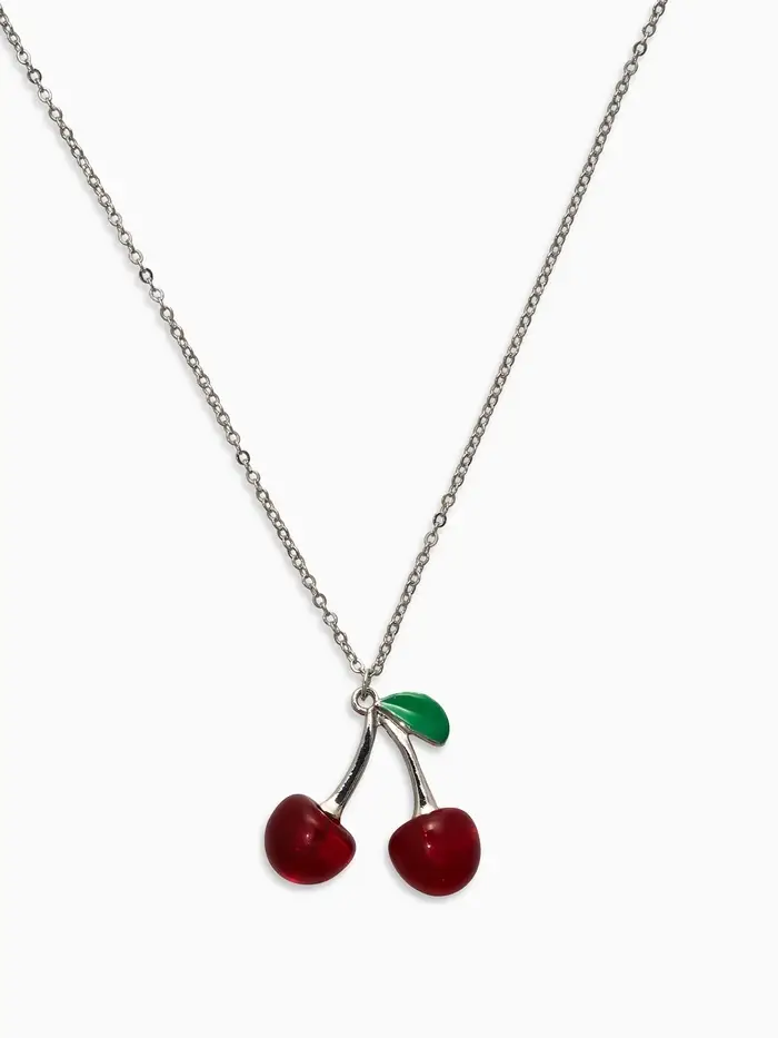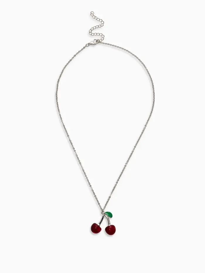 Кулон на цепочке "Черешня", цвет бордово-зелёный в серебре 40+удл