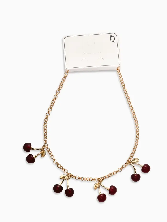 Цепь с подвесками "Вишня", 40+удл, цвет бордовый в золоте