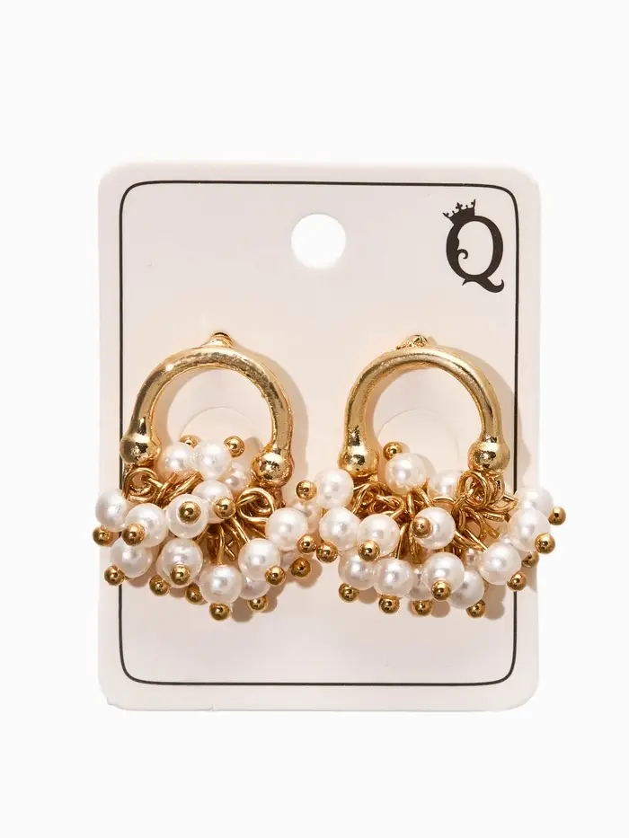 Серьги с жемчугом «Бусина» двойной круг, цвет золото