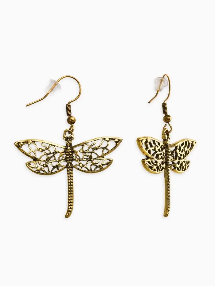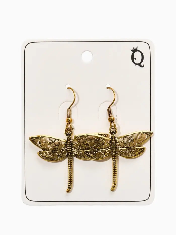 Серьги метал "Аутентичность" стрекоза, цвет чернёное золото