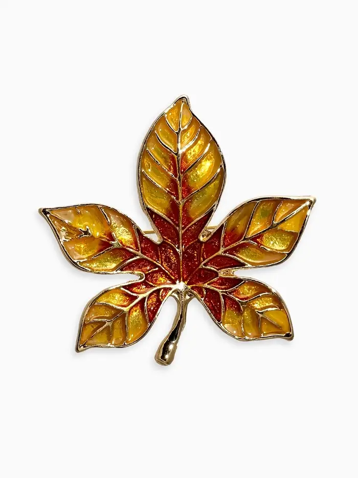 Брошь "Лист Клёна" прозрачная эмаль, цвет жёлто-коричневый в золоте