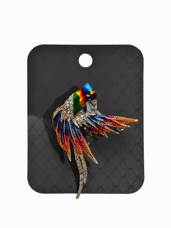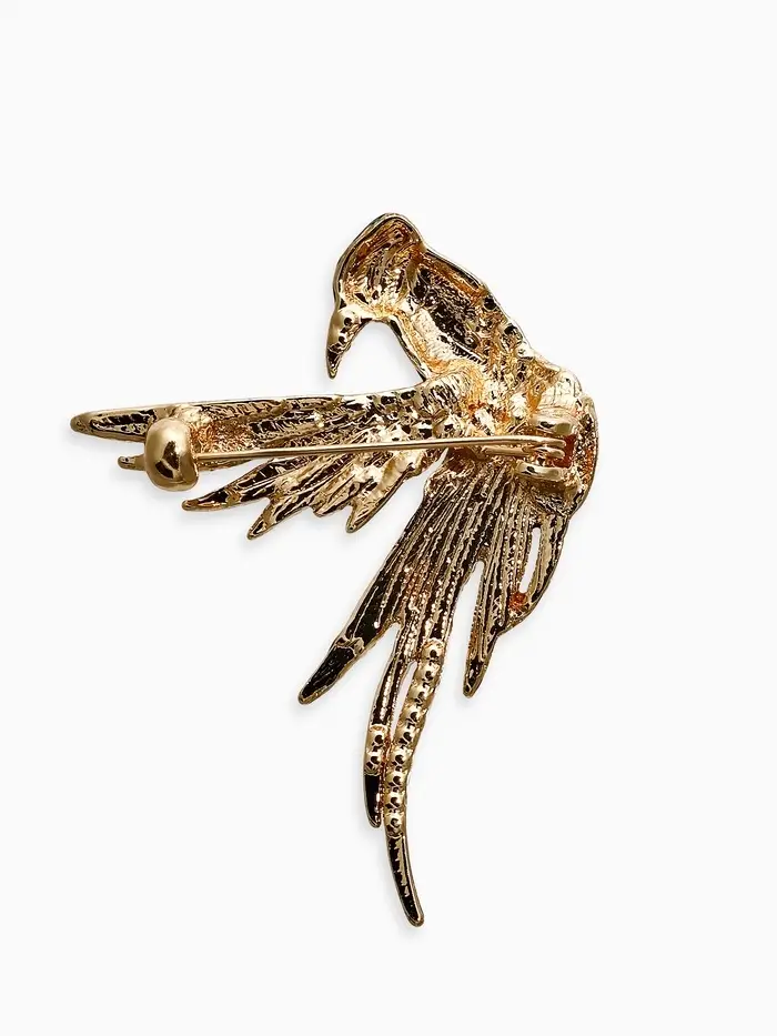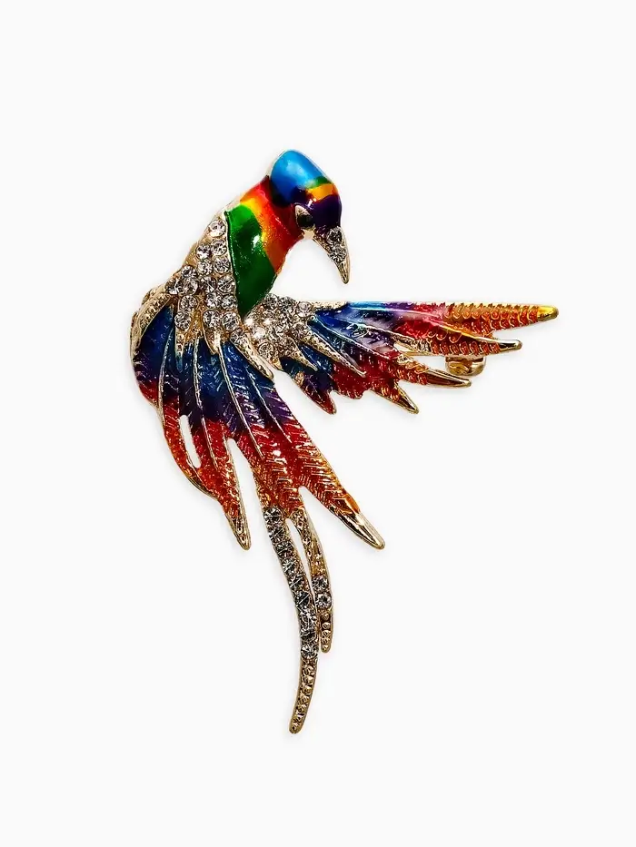 Брошь "Птица Попугай", цветная в золоте