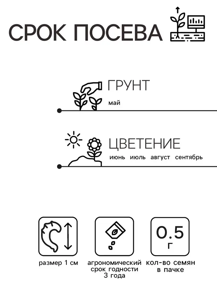 Как сажать. Семена сеют в открытый грунт на глубину 1–2 см. Всходы прореживают. Для более раннего цветения возможен подзимний посев в конце октября.