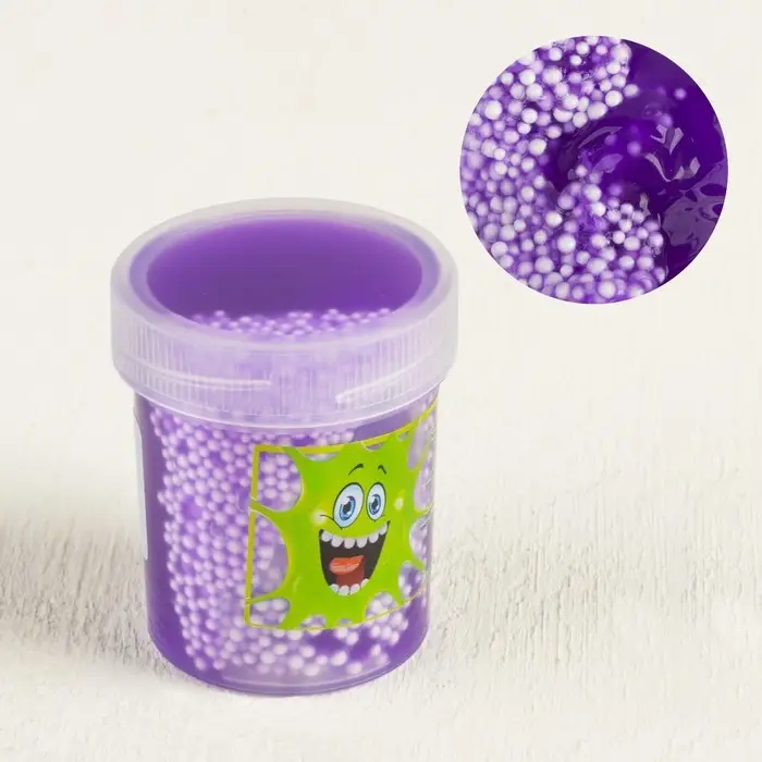 - Антистресс-эффект за счёт маленьких шариков в самом слайме