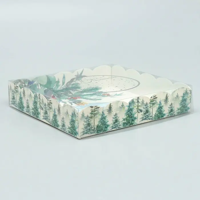 Коробка для кондитерских изделий с PVC крышкой «Зима», 15 х 15 х 3 см
