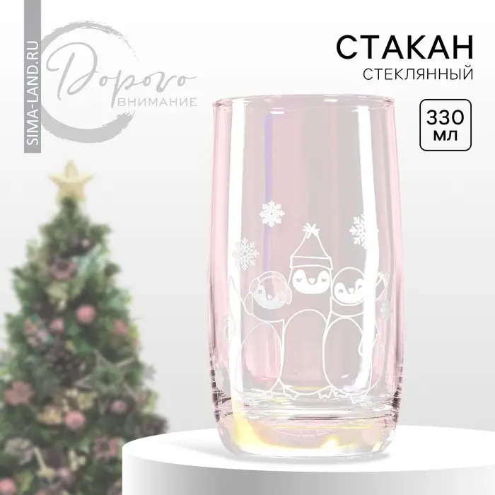 Стакан стеклянный «Пингвины», 330 мл