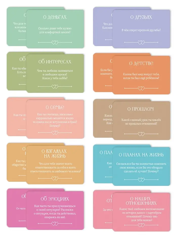 Игра построена на принципе открытого диалога. По очереди вытягивайте карты, читайте вопросы вслух и делитесь своими самыми искренними мыслями и чувствами. Каждый ответ — это шаг к более глубокому пониманию друг друга и укреплению вашей эмоциональной связи.