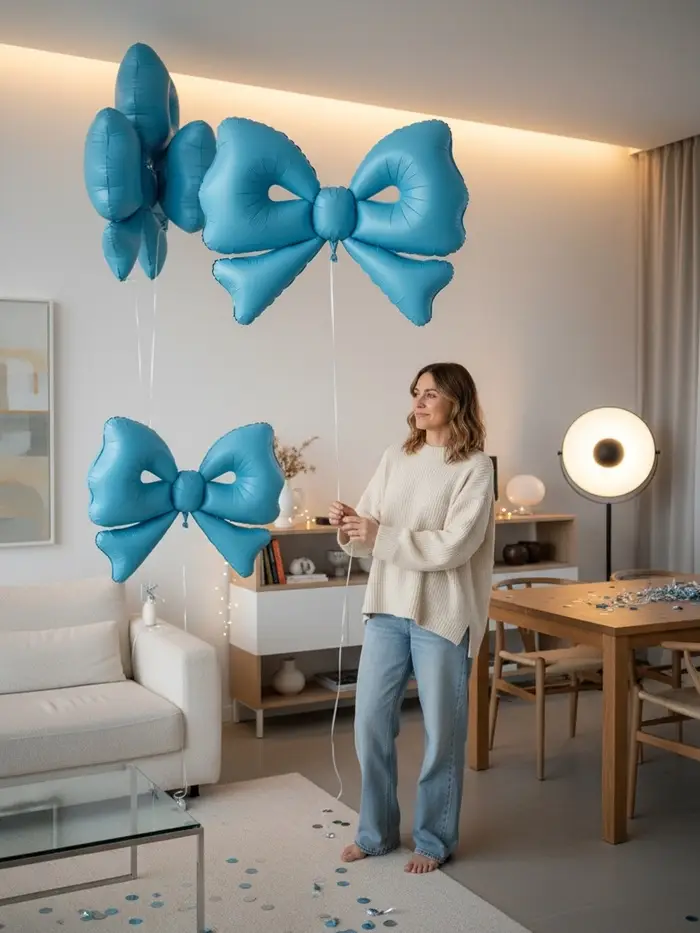 Воздушный шар фольгированный 50" "Бант" цвет голубой матовый