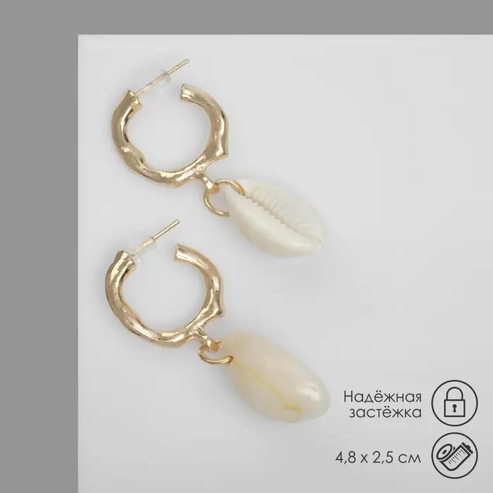 Серьги металл «Морские» с ракушками, цвет бежевый в золоте