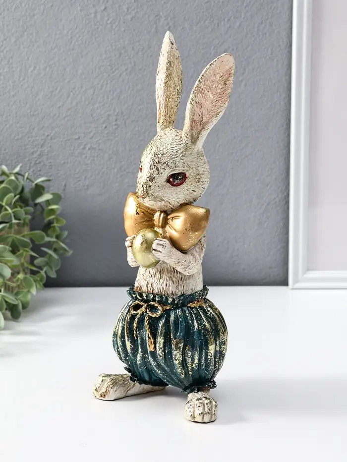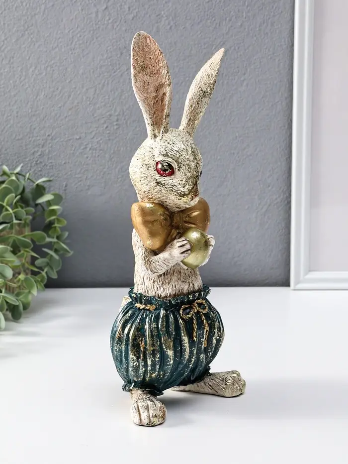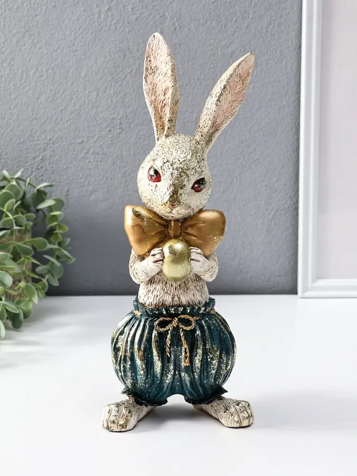 Сувенир полистоун "Зайчик с золотым яичком" 12х9,5х30 см