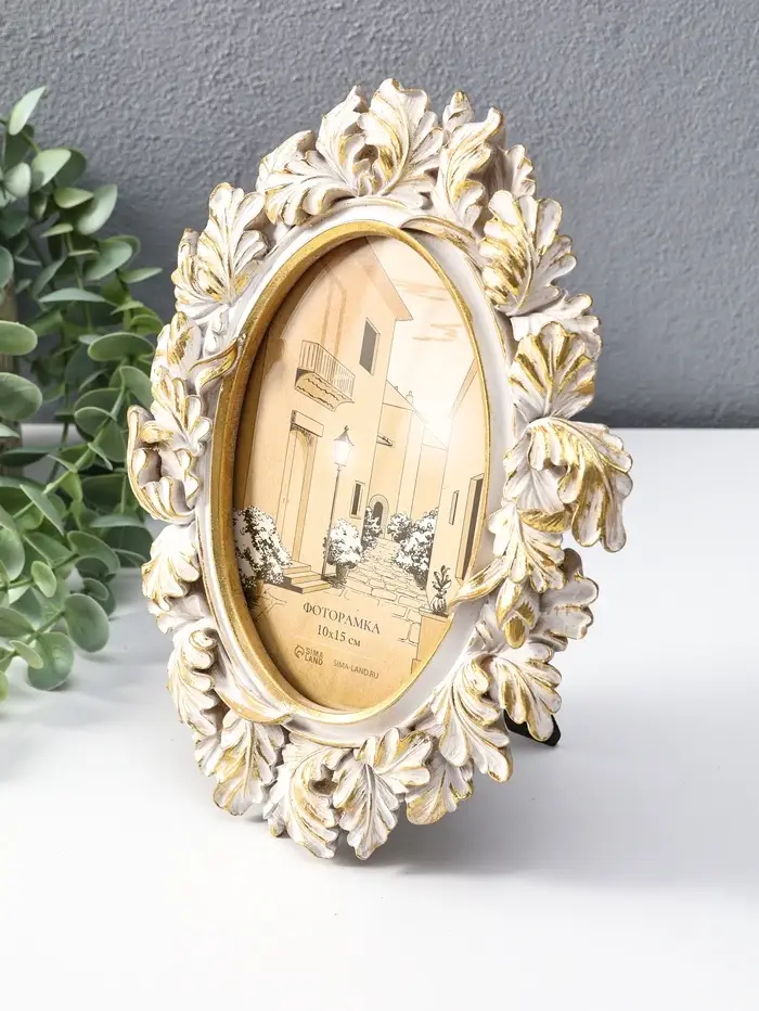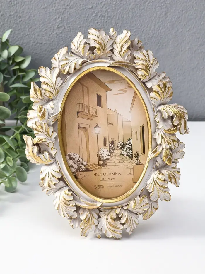 Фоторамка полистоун 10х15 см "Дубовые листья" белая с золотом 18х2х23 см