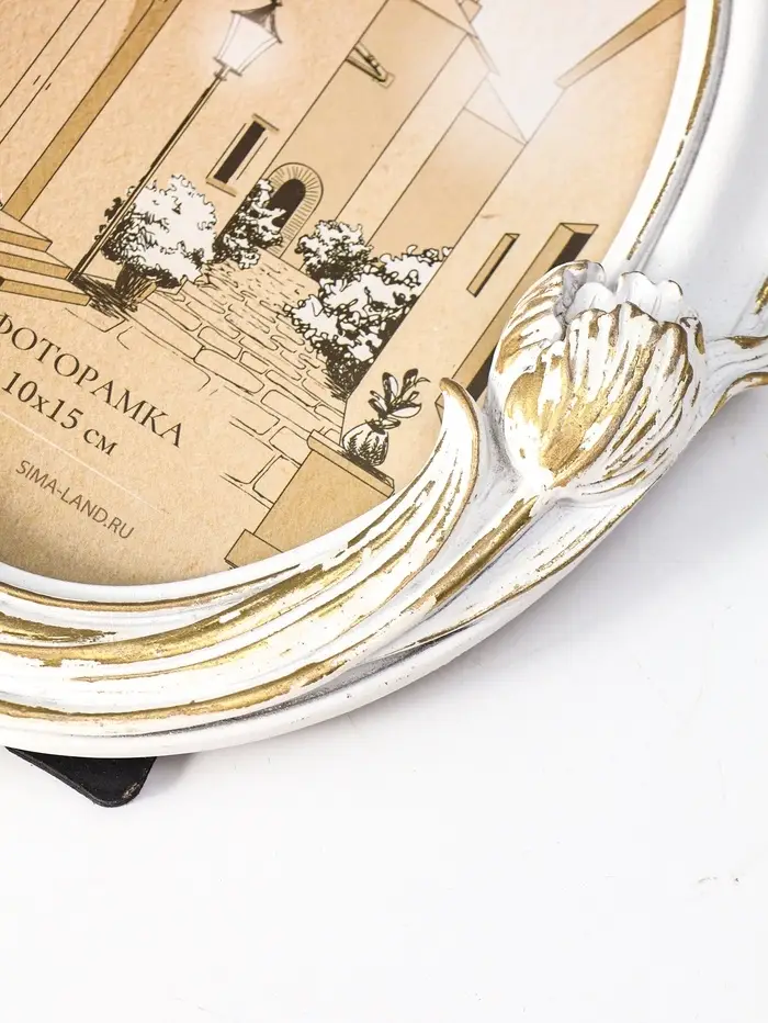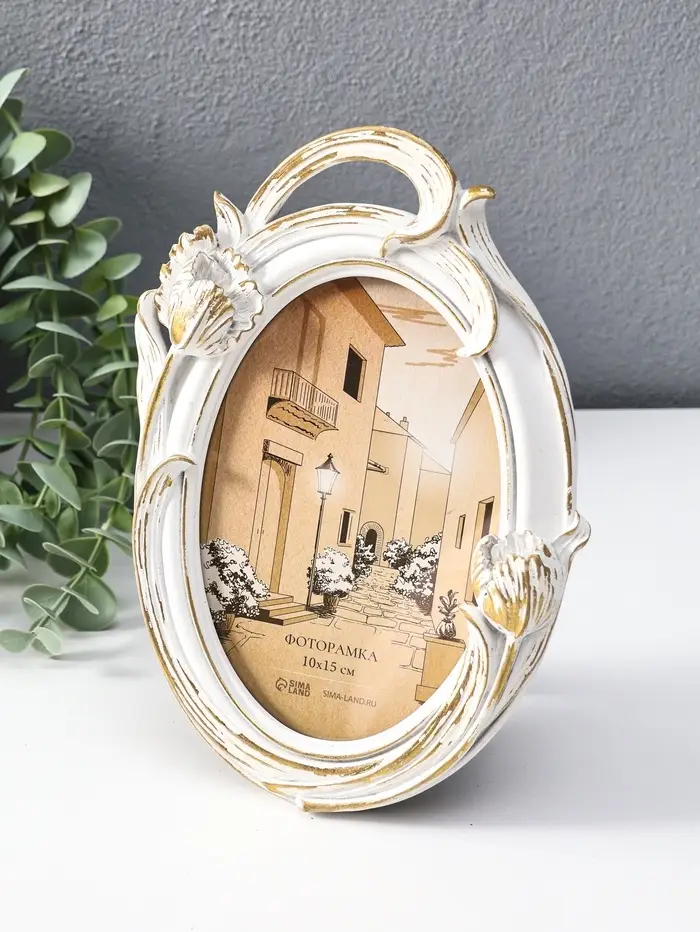 Фоторамка полистоун 10х15 см "Махровые тюльпаны" белая с золотом 14х2,5х20 см