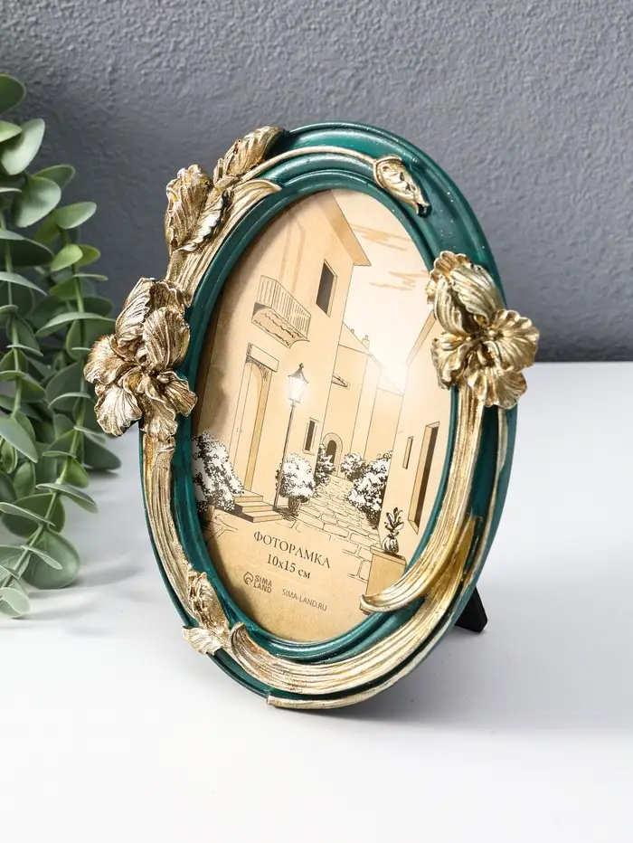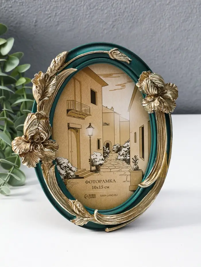 Фоторамка полистоун 10х15 см "Ирисы" зелёная с золотом 15,5х2,5х18 см