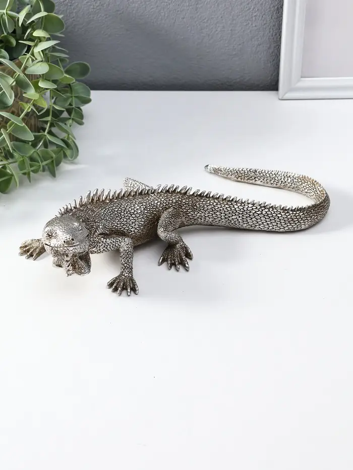 Сувенир полистоун "Игуана" чернённое серебро 25,2х12,2х7 см