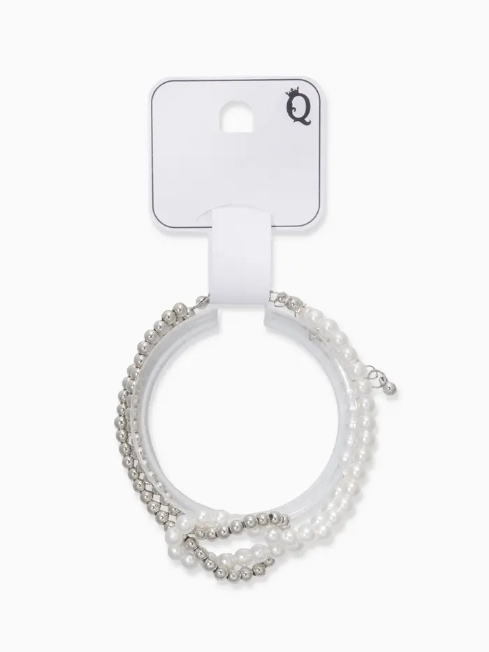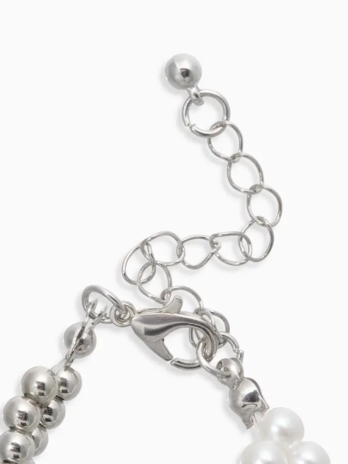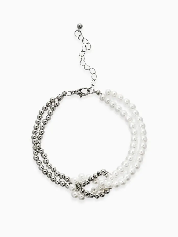 Браслет жемчужный "Узел", цвет белый в серебре 17+5см, бусина 6