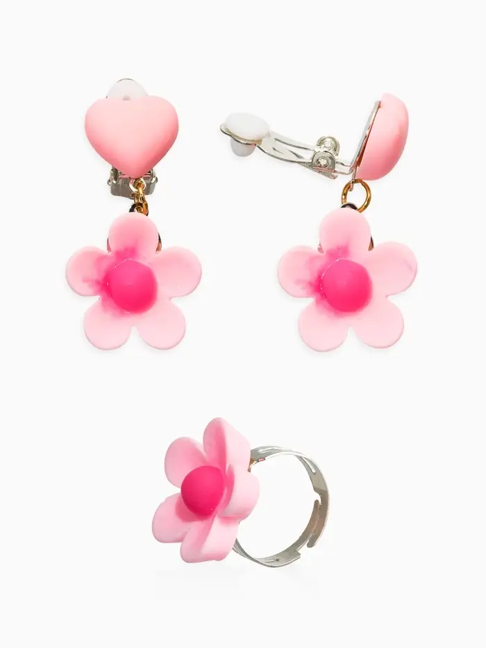 Набор детских украшений "Выбражулька" цветок, 4 предмета: клипсы, кольцо, бусы, браслет