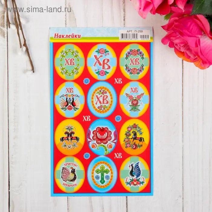 Наклейки пасхальные "Городецкая роспись" с глиттером
