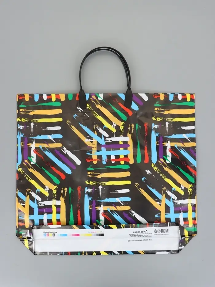 Пакет "Цветные линии", полиэтиленовый с пластиковой ручкой, 38 х 34 + 3 см, 90 мкм