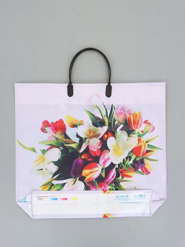 Пакет "Весенний вальс", полиэтиленовый с пластиковой ручкой, 38 х 34 + 3 см, 90 мкм