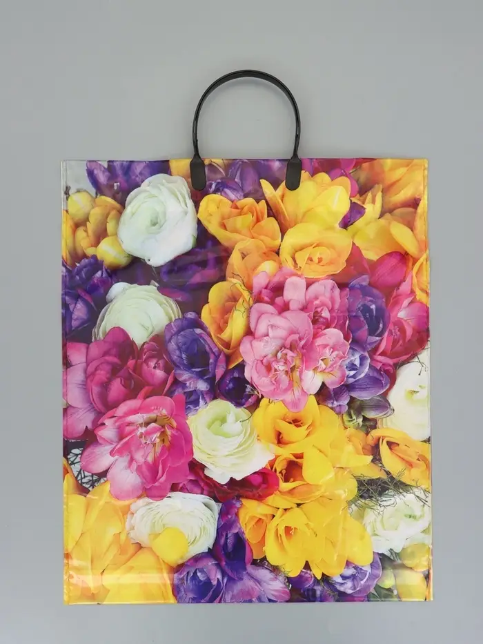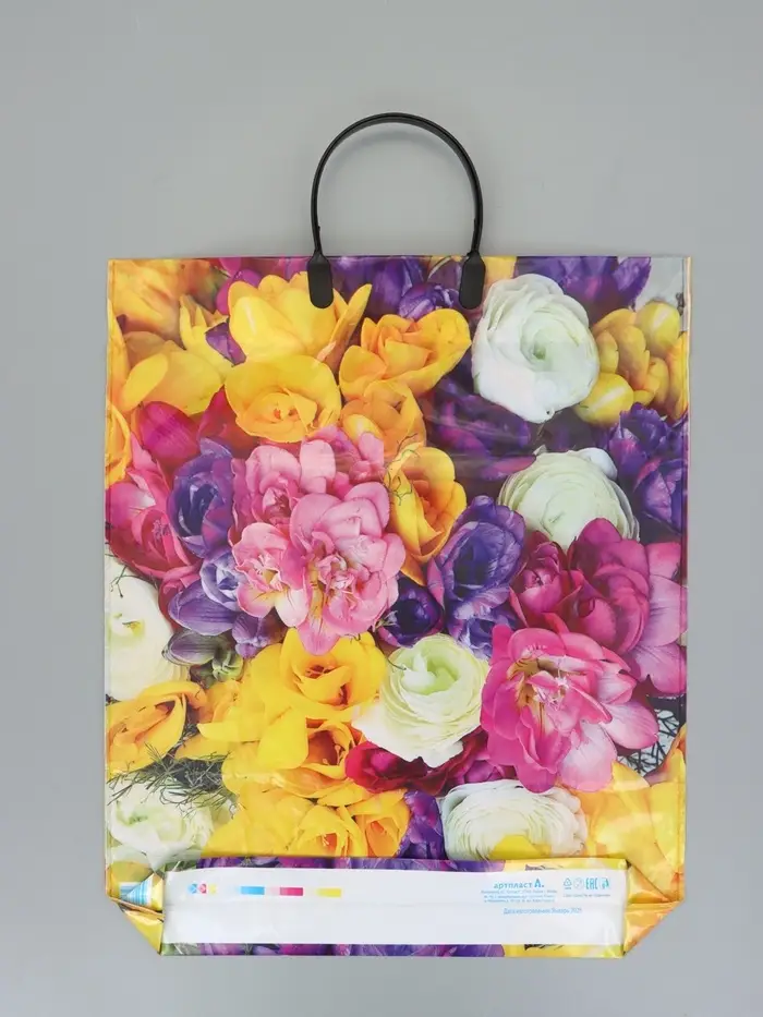 Пакет "Весенний букет", полиэтиленовый с пластиковой ручкой, 38 х 45 + 3 см, 90 мкм
