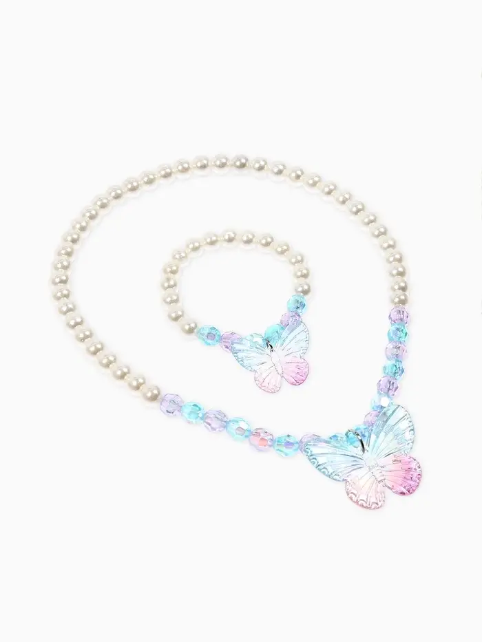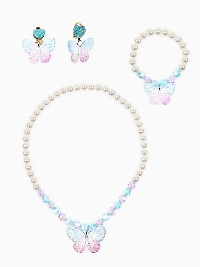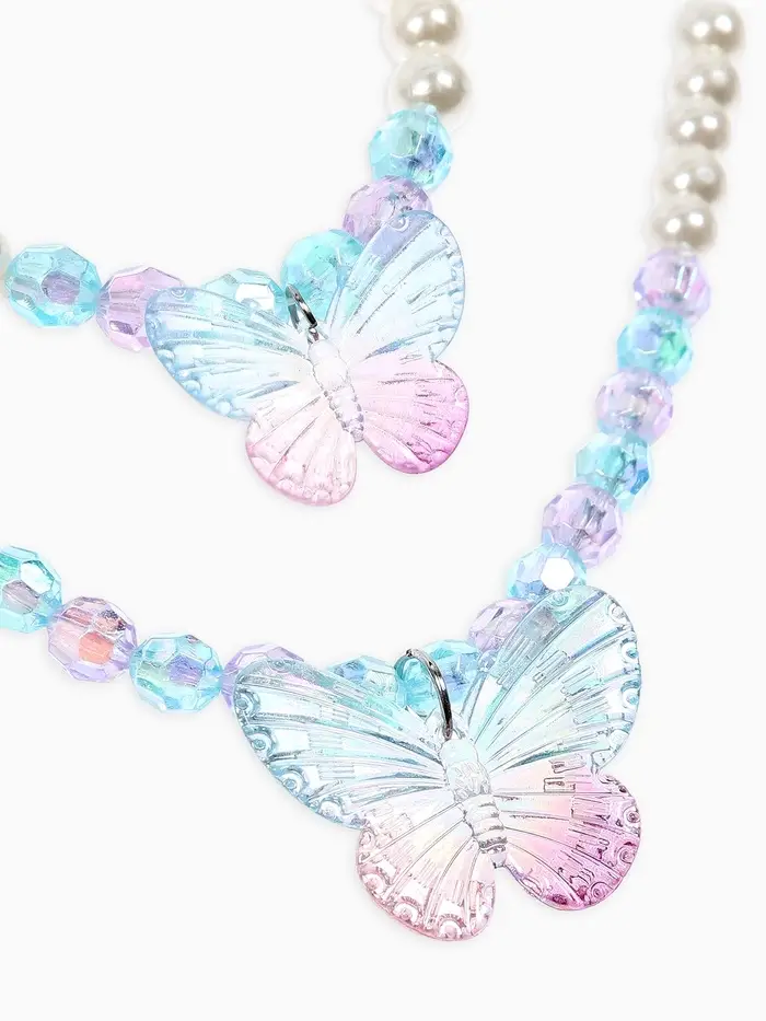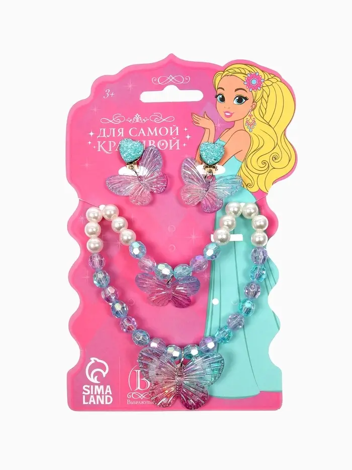 Набор детский «Выбражулька» 4 предмета: бусы, браслет d=6 см, клипсы, кольцо, бабочка