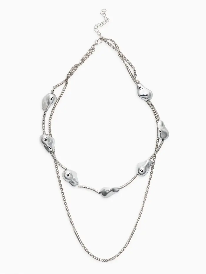 Колье "Борокко", цепь, 2 яруса, цвет серебро