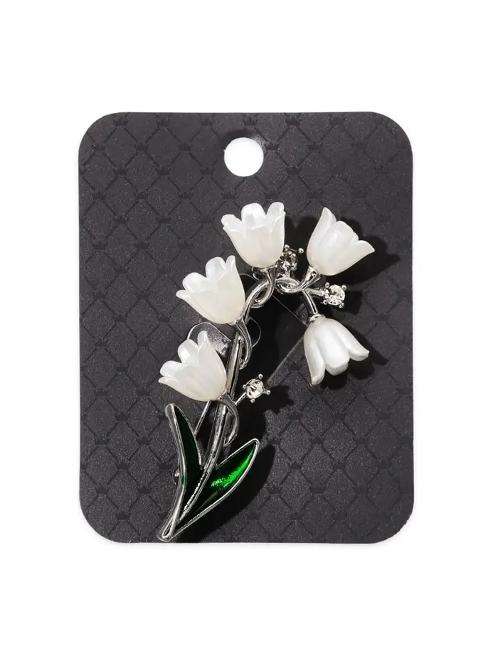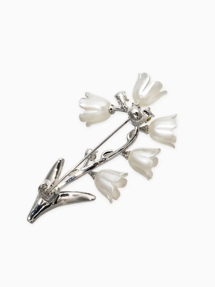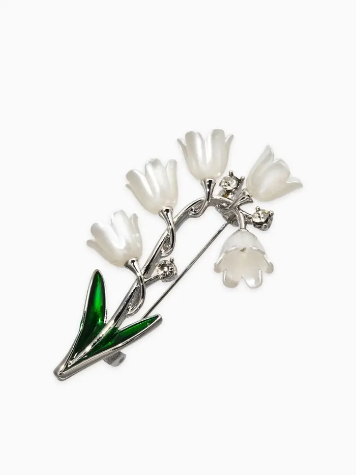 Брошь "Цветы Ландышей", цвет бело-зелёный в серебре