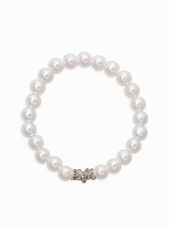 Браслет "Стильный жемчуг" (набор 5шт), №8/16, цвет белый в серебре