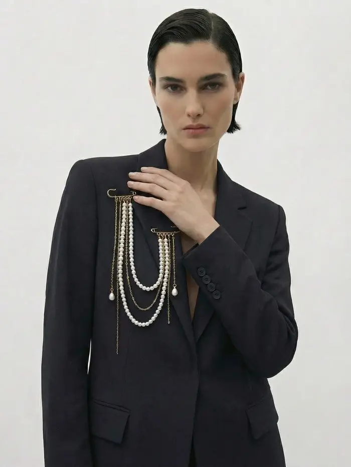 Булавки "Аксельбант", жемчуг, цвет белый в золоте