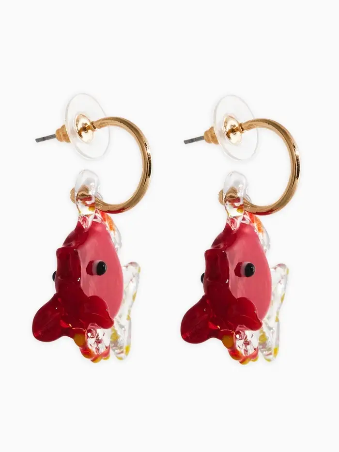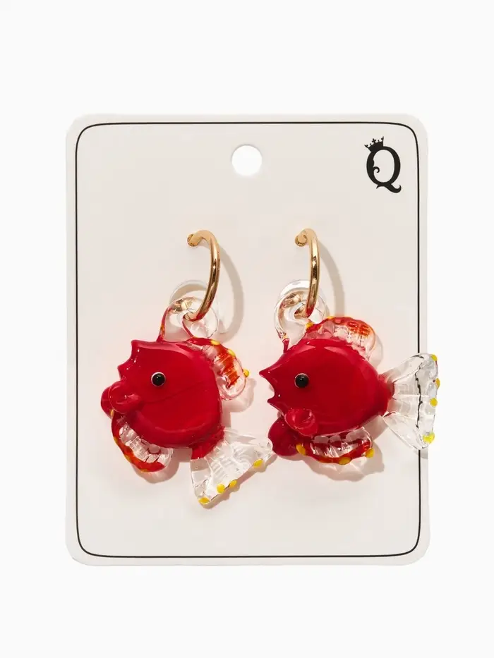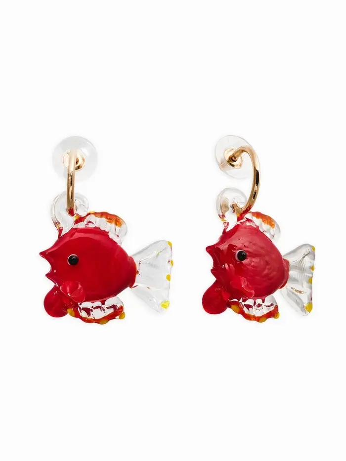 Серьги из стекла "Море", рыба, цвет красный в золоте