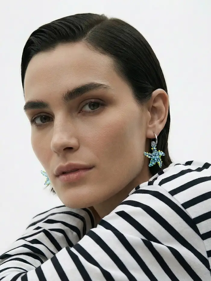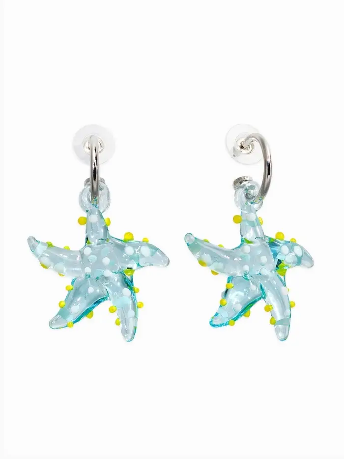 Серьги из стекла "Море", звезда, цвет голубой в серебре