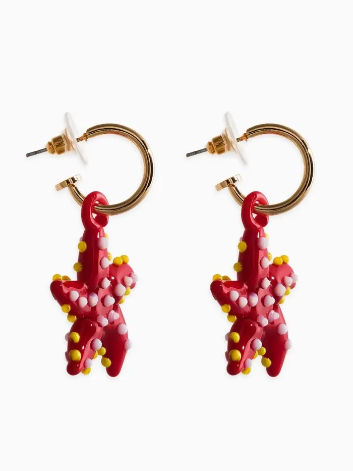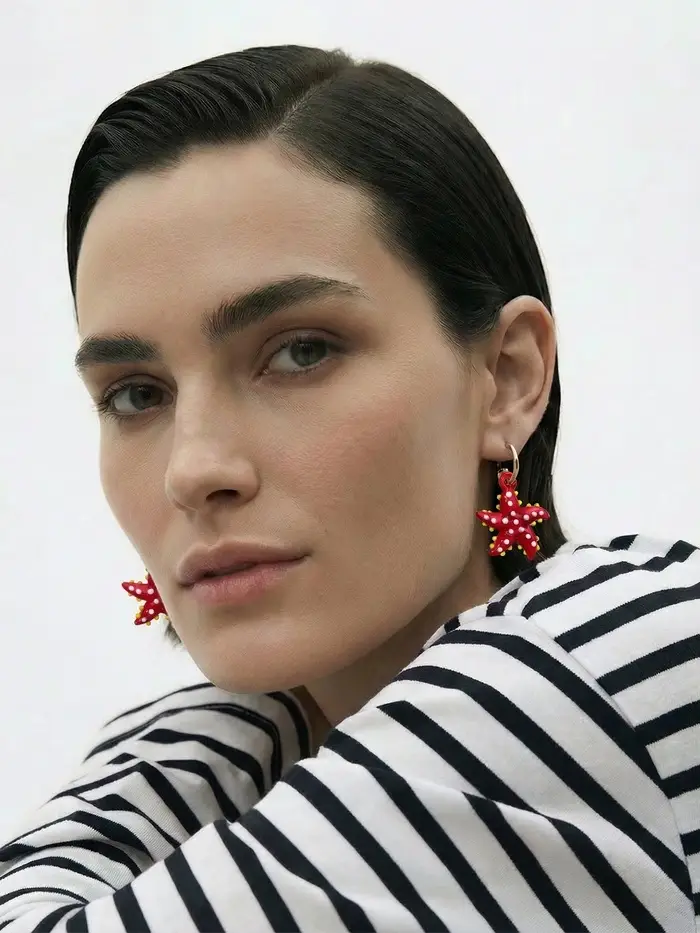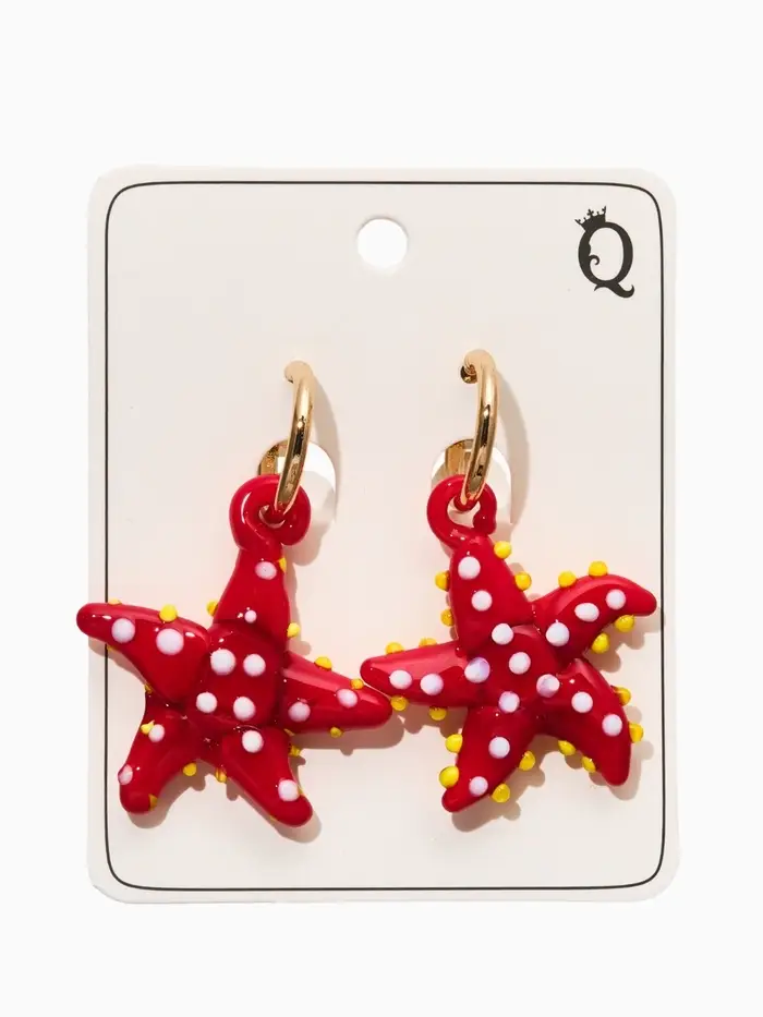 Серьги из стекла "Море", звезда, цвет красный в золоте