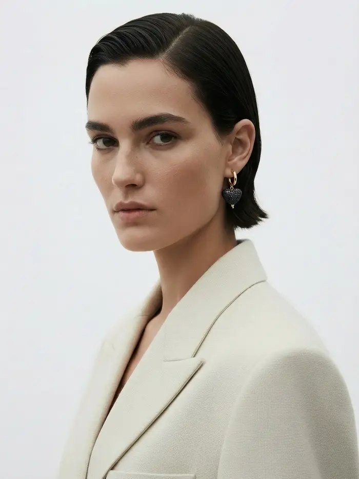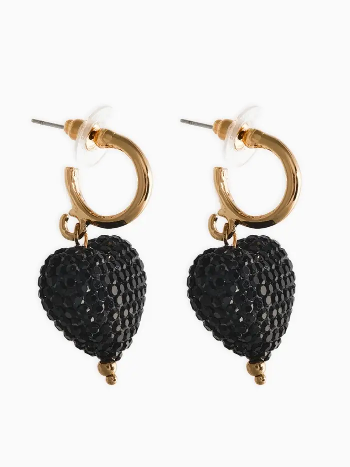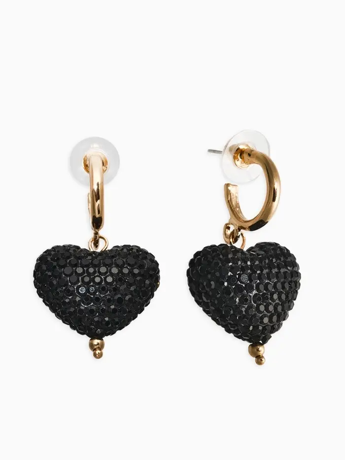 Серьги "Сияние вечера" сердце, цвет чёрный в золоте